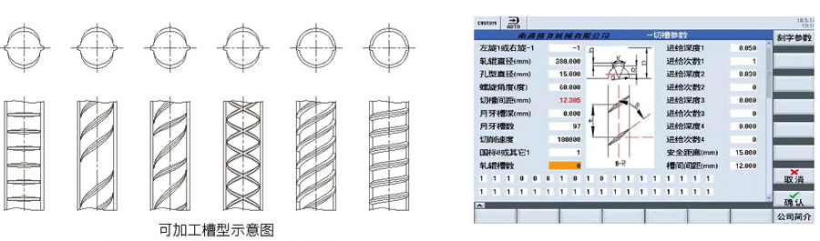 数控系统内嵌入了我拼搏体育,拼搏体育(中国)一站式服务平台与西门子拼搏体育,拼搏体育(中国)一站式服务平台合作开发的自动编程软件,只需输入轧辊直径、规格等参数,自动编辑生成月牙槽加工程序和刻字程序。减轻了烦琐的编程工作,提高加工效率。